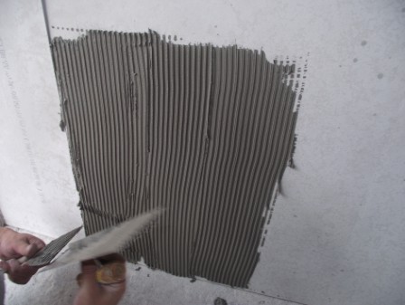 6. 將瓷磚粘結劑抹于基面上