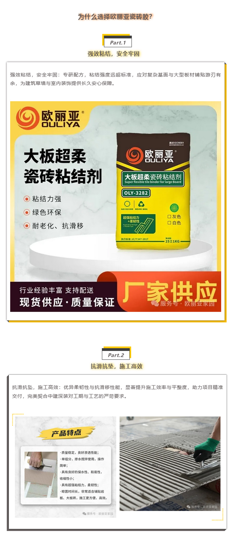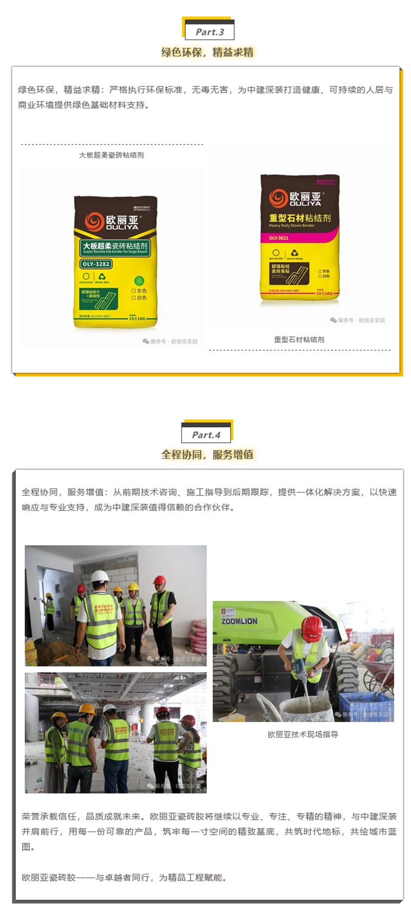 東莞市歐麗亞環(huán)保材料有限公司專注于“環(huán)保,創(chuàng)新”型建筑裝飾材料,瓷磚膠,硅藻泥,石材防水背膠,抗裂砂漿,裝飾砂漿,防水系列,自流平水泥,防霉膩?zhàn)樱弦惶羁p劑的研發(fā)、生產(chǎn)、營(yíng)銷、技術(shù)咨詢于一體的墻飾高新技術(shù)企業(yè)。